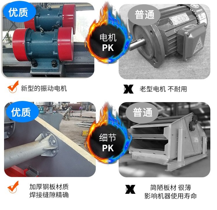 ①、采用塊偏心作為激振力,激振力強。