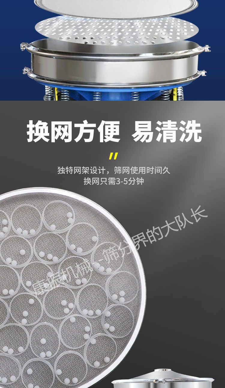篩網(wǎng)更換便捷旋振篩根據(jù)不同需要有多種網(wǎng)架結(jié)構(gòu);其中一種把更換篩網(wǎng)的時間降到35分鐘,比其他類型篩機節(jié)約3060分鐘。篩網(wǎng)壽命更長,效率更高。