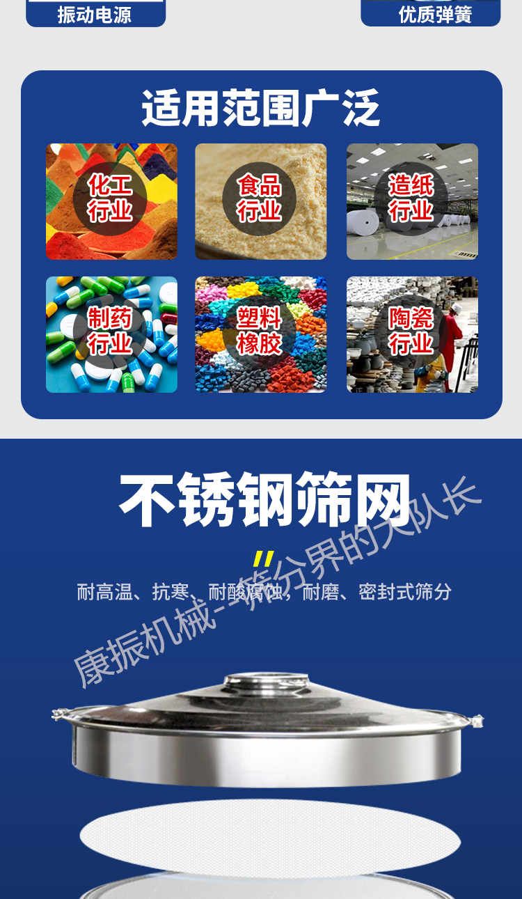 產(chǎn)品描述:河南康振機械有限公司主要生產(chǎn)經(jīng)營:超聲波振動篩,直線振動篩,振動設備,振動過篩,不銹鋼振動篩,振動平臺廠家,脫水篩,食品篩分機,醫(yī)藥篩分機,實力制造廠家,服務熱線:13903732065